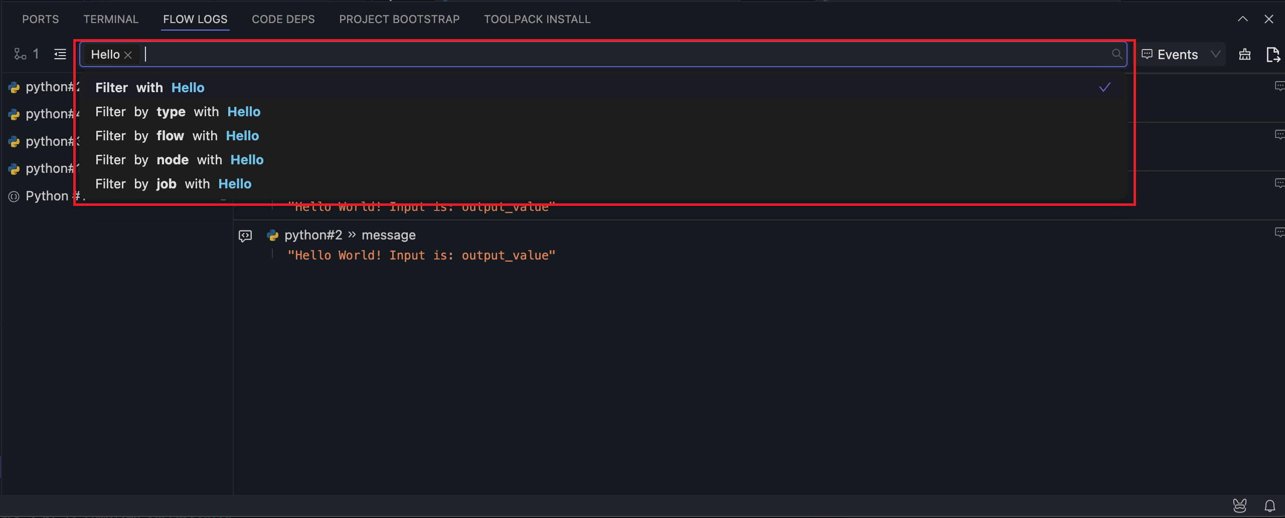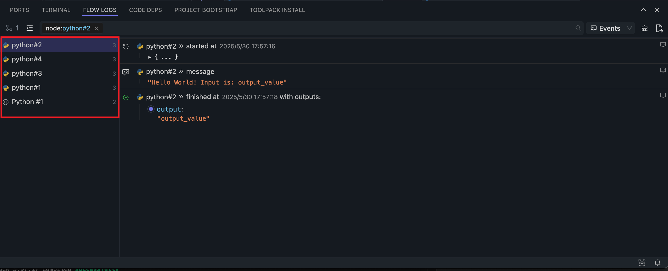 After running the Flow using any method, the log panel at the bottom will display the run logs. Each run will record the latest logs, overwriting the previous logs.