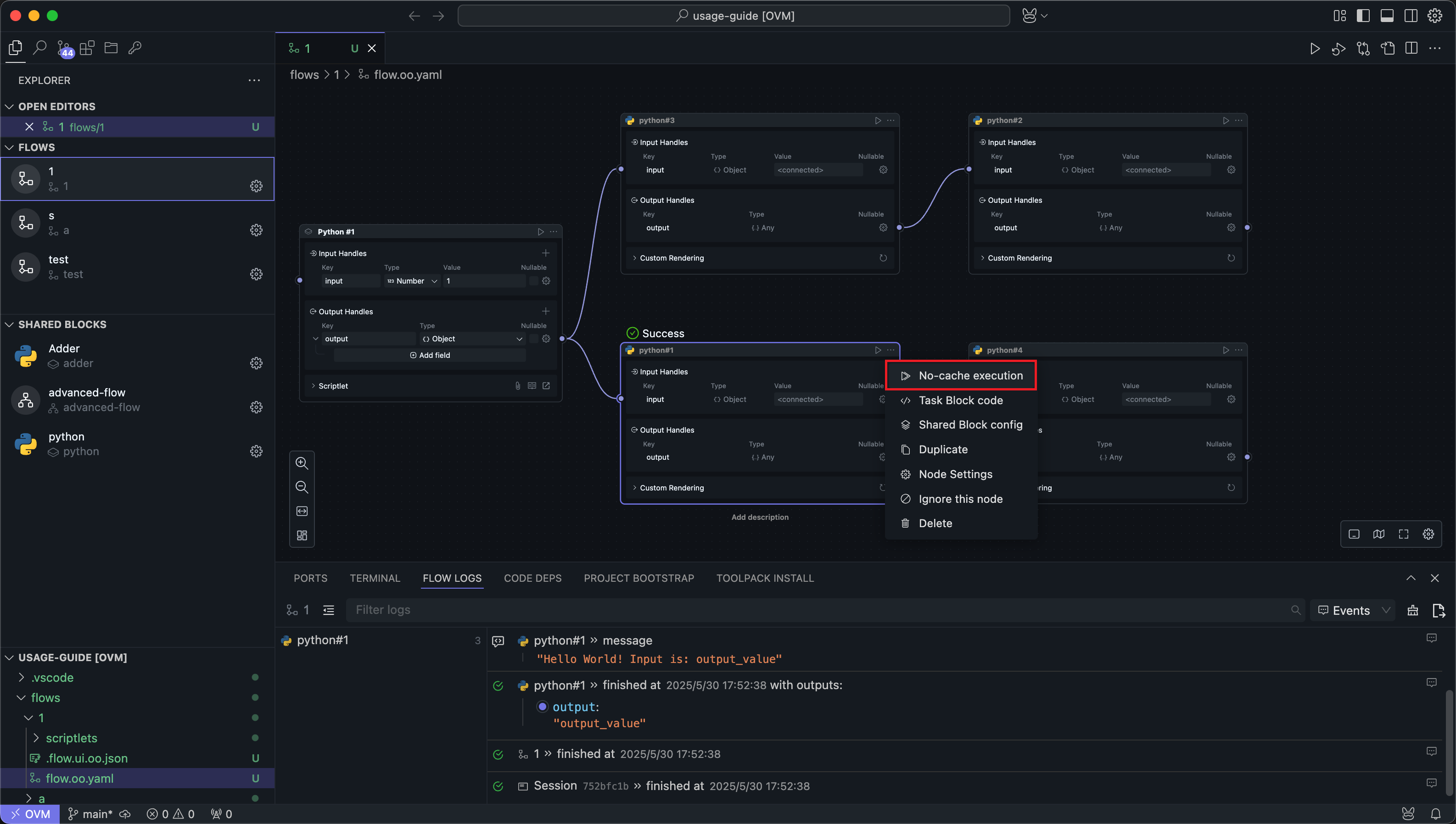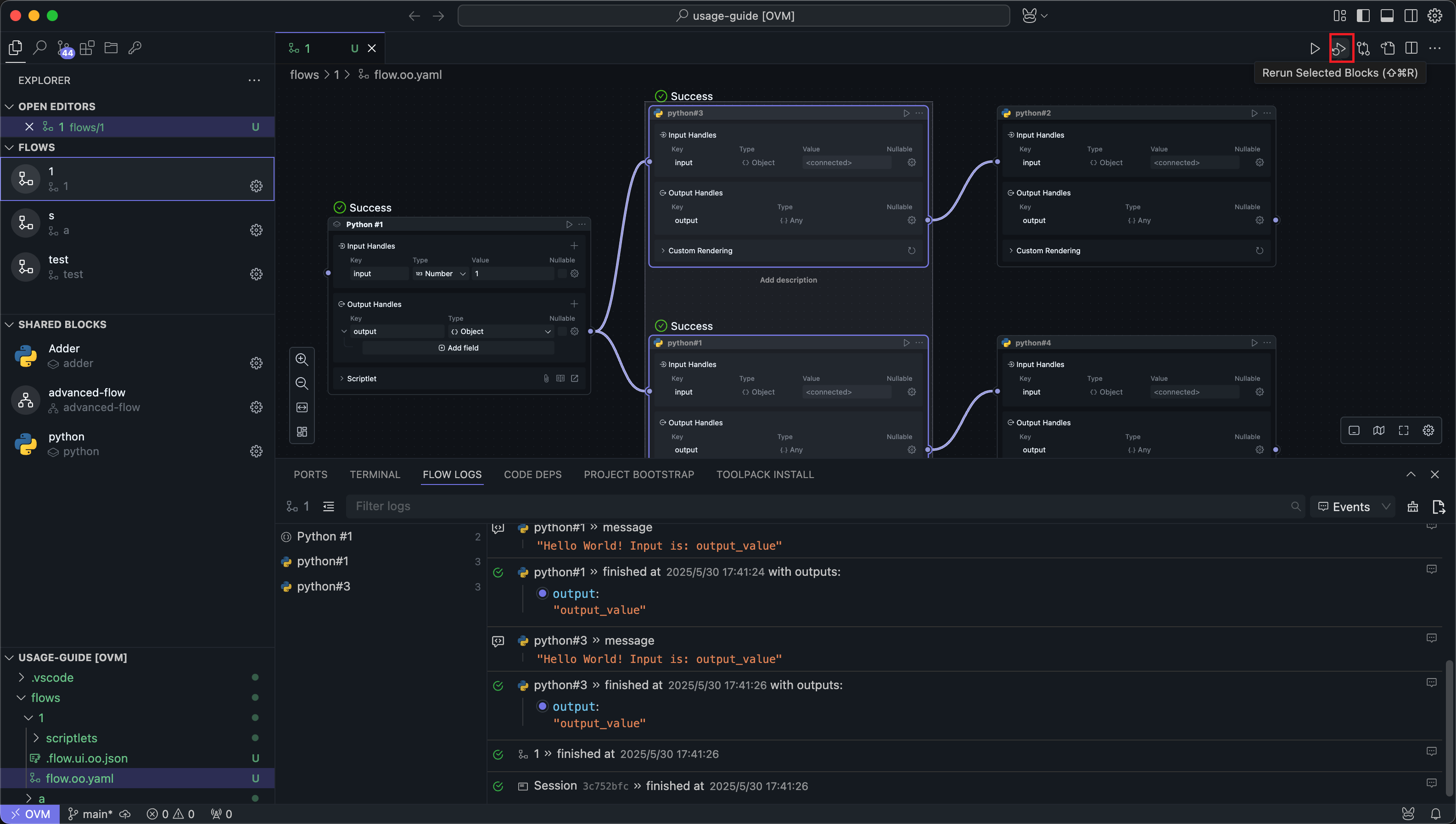 OOMOL Studio will search upstream Nodes of the selected Nodes and run from the upstream to the selected Nodes.